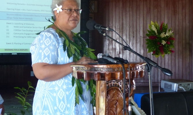 P1180248Hon. Fiame Naomi Mata'afa, Deputy Prime Minister and Minister for theMinistry of Natural Resources and Environment, delivering the keynote address on the day. Photo: SPREP