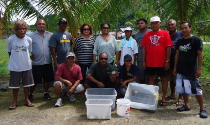 This is part of the third major distribution since the project began. "We gave the first batch to just two farmers, in 2011," said aquaculturist, Miguel Delos Santos, who is managing the activities for the PACC project at the Palau Community College hatchery in Ngaremlengui State. Miguel oversees the reproduction and early stages of the crabs, up to a size when farmers can take over and rear them. "Interest has been really growing, and many more people are seeing the potential of raising crabs, to eat and also to sell," he said.