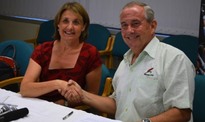 SPREP Director General David Sheppard and High Commissioner Jackie Frizelle today signed an NZD 4.5 million dollar agreement for financial support from 2013 to 2015. This will support practical programmes in Pacific Countries which will improve the management of solid waste, protect biodiversity while encouraging economic development through eco-tourism and assist Pacific countries in responding to climate change.